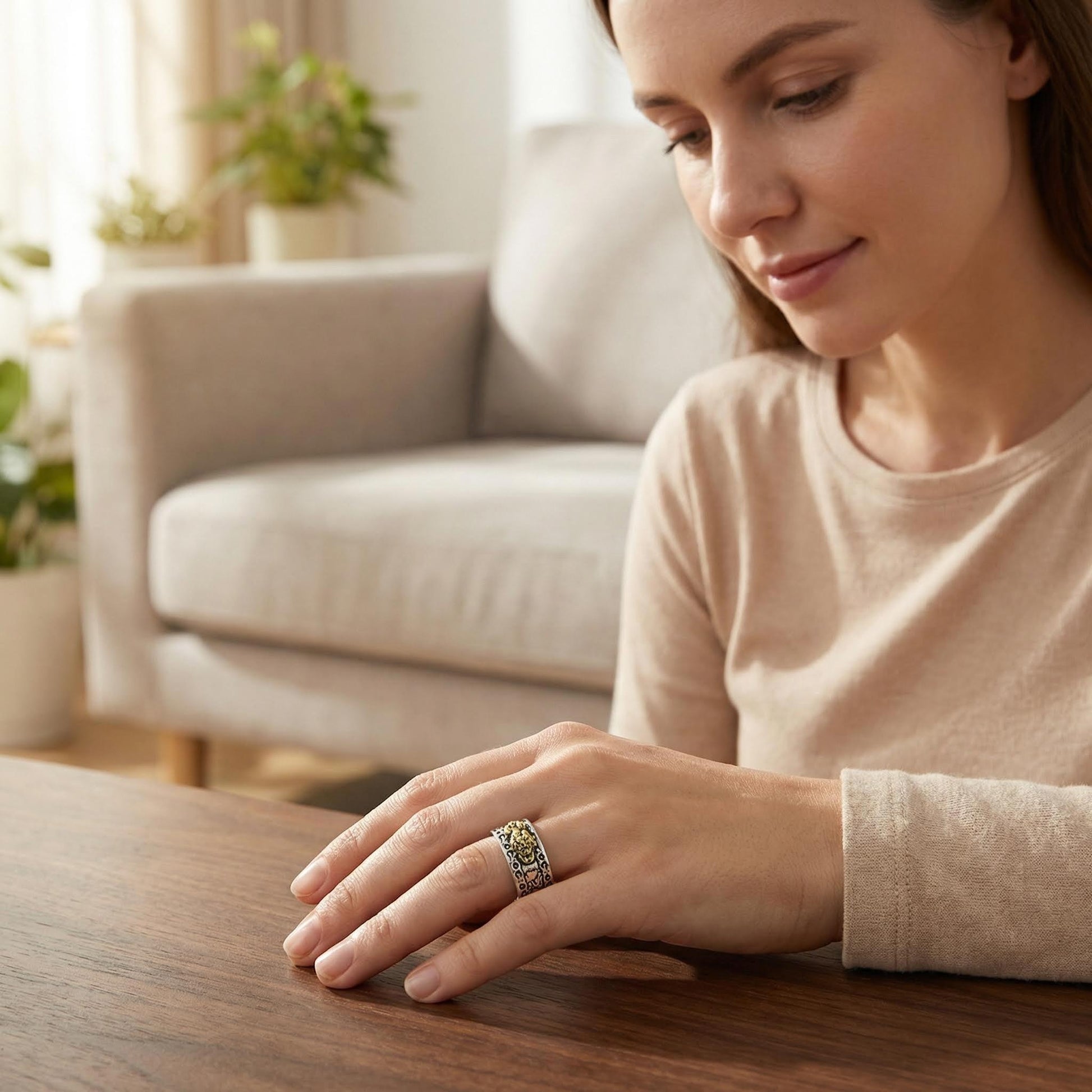 The Fortune Guardian Mantra Ring is designed to help you align with prosperous energy and invite greater abundance into your daily life. Adorned with a symbolic wealth-guardian creature and engraved with an ancient mantra, this ring serves as a meaningful reminder to focus on your financial well-being. Crafted from premium 990 Sterling Silver, it offers lasting quality, elegant value, and a harmonious personal presence.